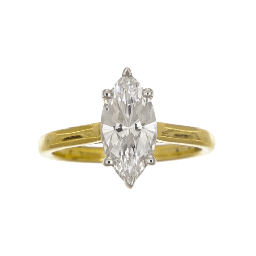 A timeless solitaire engagement ring crafted in warm 18K yellow gold. Designed to feature a marquise center diamond, this style is part of the signature New Aire collection, celebrated for its refined elegance and modern simplicity.