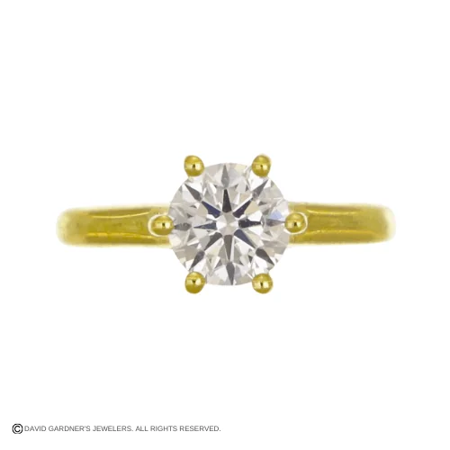 A timeless solitaire crafted in 18K yellow gold, this custom engagement ring features a classic setting designed to showcase your chosen round center diamond. Delicate diamond accents are set within the gallery, adding a hidden sparkle when viewed from the side. A perfect blend of tradition and subtle detail, this ring offers understated elegance with a touch of brilliance.