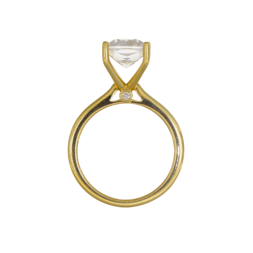Delicate and timeless, this 14K yellow gold engagement ring is designed to feature a round center diamond in a classic solitaire style. A subtle peekaboo diamond detail beneath the center adds a hidden touch of sparkle, making this design both elegant and unique. A beautiful blend of simplicity and surprise.